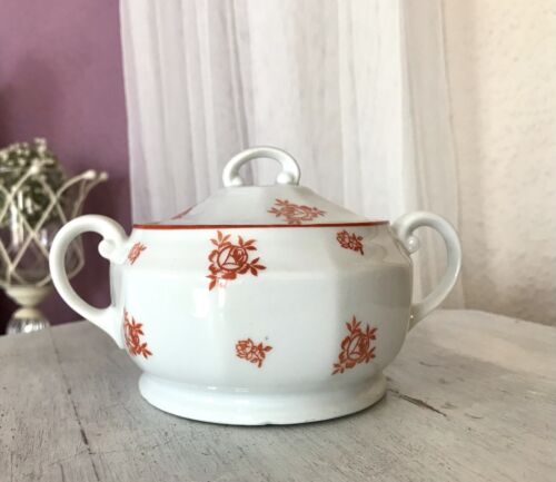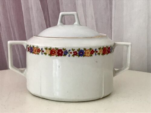 Antik Art Déco Porzellan Zuckerdose Blumen Muster Rand