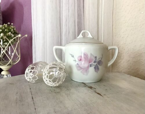 Antik Art Déco Porzellan Zuckerdose Rosen Goldrand
