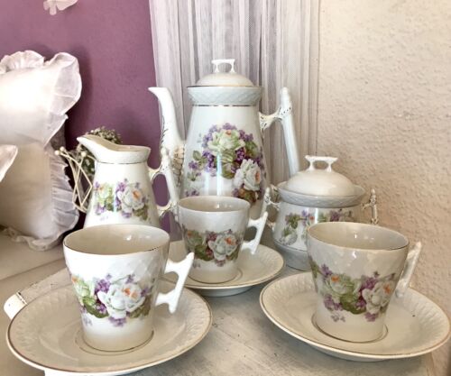 Antik Jugendstil Porzellan Kaffeeservice 4 Personen Wunderschön! Rosen Muster
