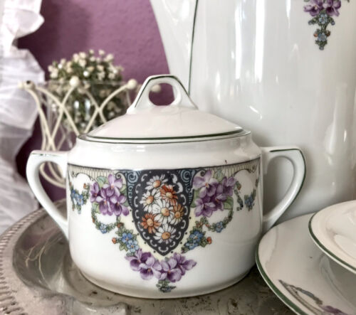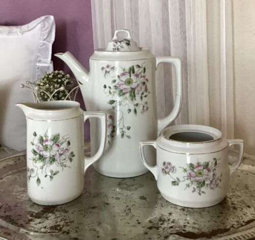 Antik Jugendstil Porzellan Kernstück Kaffeekern Zuckerdose Kanne Sahnegießer