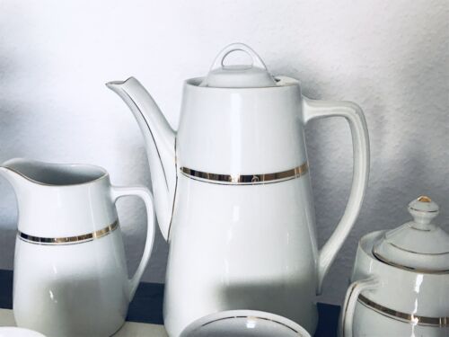 Antik Jugendstil Porzellan Kaffeeservice Zuckerdose Kanne weiß Goldrand 6 Pers.
