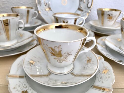 Antik Porzellan 6 Personen Kaffeeservice Weiß Golddekor Carl Tielsch Altwasser