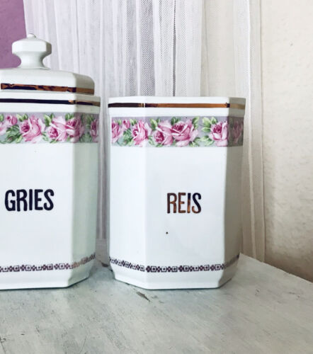 Antik Jugendstil Porzellan Vorratsgefäß Reis Gefäß Vorratsdose Behälter Rosen