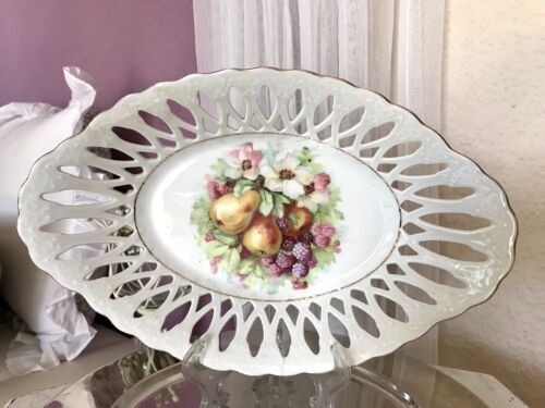 Antik Jugendstil Porzellan Schale Obst Blüten Durchbruch Goldrand So Schön DPV