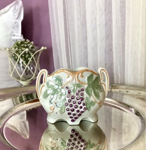 Antik kleine Jugendstil Porzellan Vase reliefiert Reben-Muster So Schön!