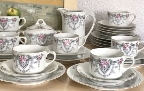 Antik Jugendstil Porzellan Kaffeeservice Kaffee Service für 6 Personen Girlanden