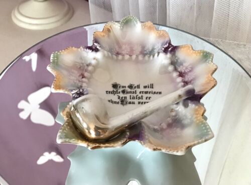 Antik Jugendstil Porzellan Schale Aschenbecher Pfeife Spruch Kuriosität