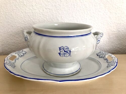 Antik Monogramm Porzellan Tafelservice Service 9 Teller 2 x Terrine Jugendstil