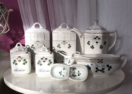 Antik Jugendstil Porzellan Kaffeeservice 6 Personen Glücksklee-Muster