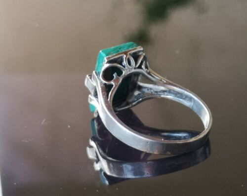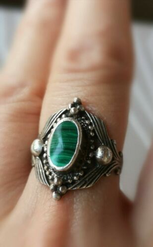 Antik Edel Jugendstil Art Déco Malachit DAMEN RING Silber SUPER Gr.54 17,2