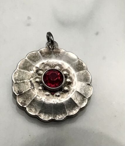 Antik Edel Anhänger Kettenanhänger 835 Silber SUPER Design mit rotem Stein Punze