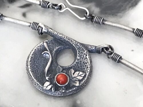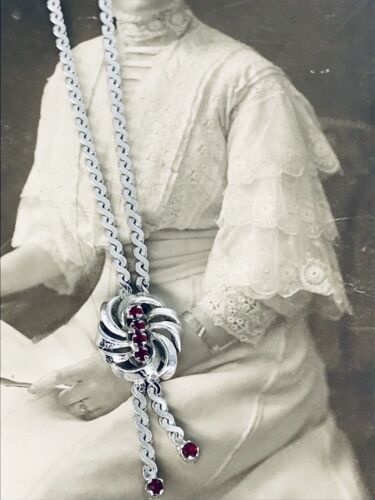 Antik edel Jugendstil Silber Collier Halskette roter Stein Originell