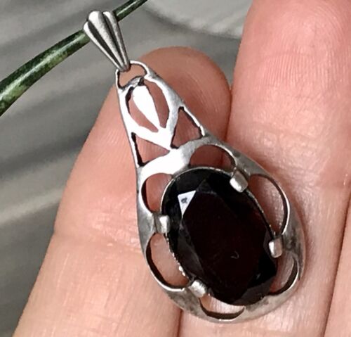 Antik Edel Jugendstil Silber Anhänger Kettenanhänger Granat Durchbruchmuster