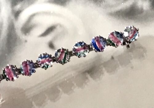 Antik Edel Art Déco 835 Silber Collier rhodiniert Halskette blau Steine Spinelle