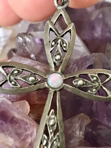 Antik Edel Jugendstil Silber Kreuz Anhänger Kettenanhänger Opal Durchbruchmuster