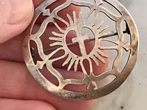 Antik Edel Brosche 835 Silber christlich flammendes Herz Kreuz
