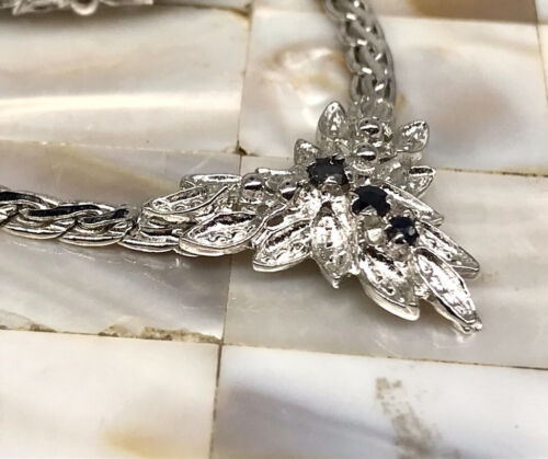 Antik Edel Art Déco 925 Silber Collier rhodiniert Halskette blau Steine Spinelle