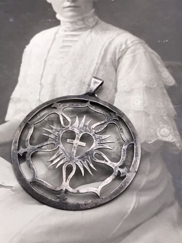 Antik Edel Anhänger Kettenanhänger Silber 900 christlich flammendes Herz Kreuz