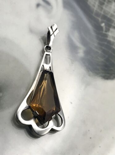 Antik Edel groß Anhänger Silber gelber Stein Super Design Rauchtopas?