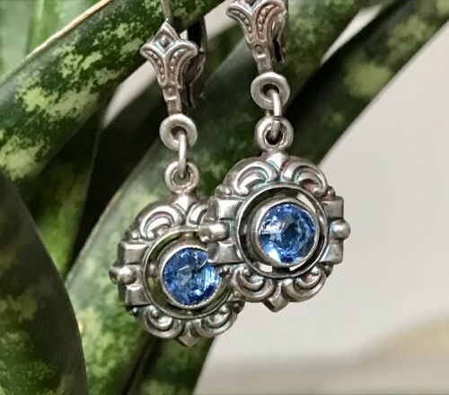 Antik Edel Ohrhänger Ohrringe DAMEN Silber blauer Glasstein 835 SUPER Design