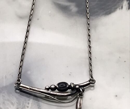 Antik Edel Jugendstil 925 Silber Collier Halskette Onyx
