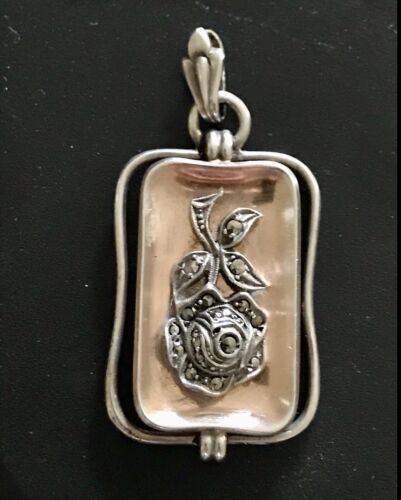 Antik Edel Anhänger Kettenanhänger Silber Rose Aplike 835 SUPER Markasite