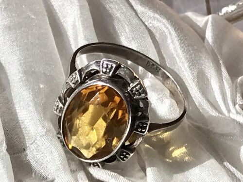 Antik Jugendstil Edel Citrin Zitrin DAMEN RING Silber 835 SUPER Design Gr. 54