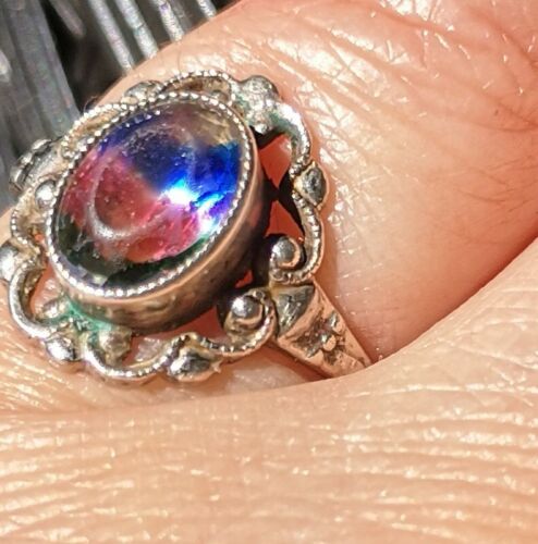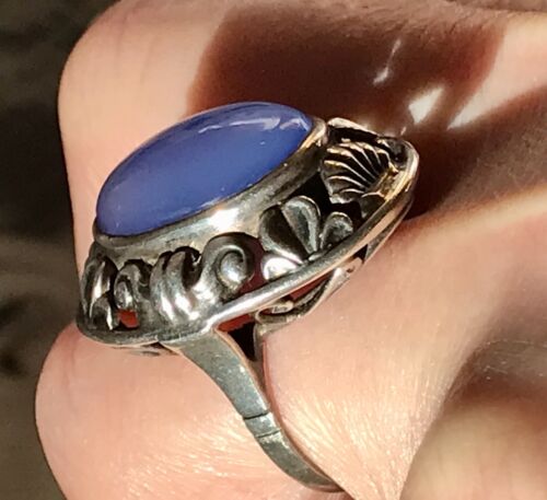 Antik Jugendstil Edel blau lila Stein Chalcedon? DAMEN RING Silber 800 Gr. 53 54