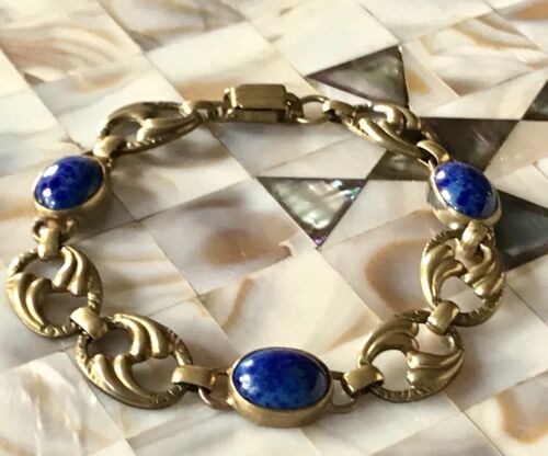 Antik Jugendstil wunderschön Tombak Armband blaue Steine herrlich Lapislazuli?