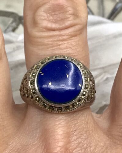 Antik Jugendstil Edel Lapislazuli DAMEN RING Silber SUPER Design Gr.58 18,4