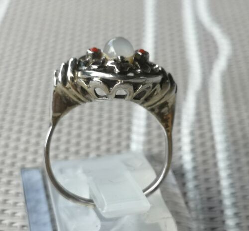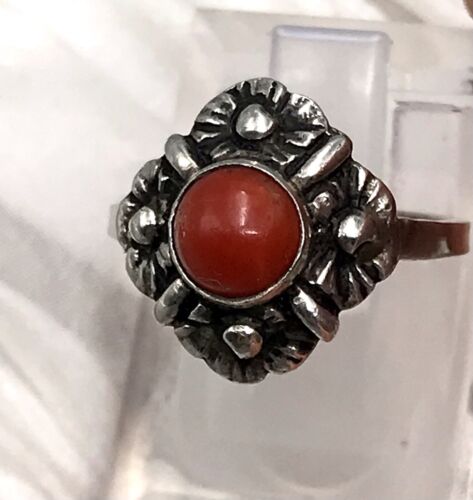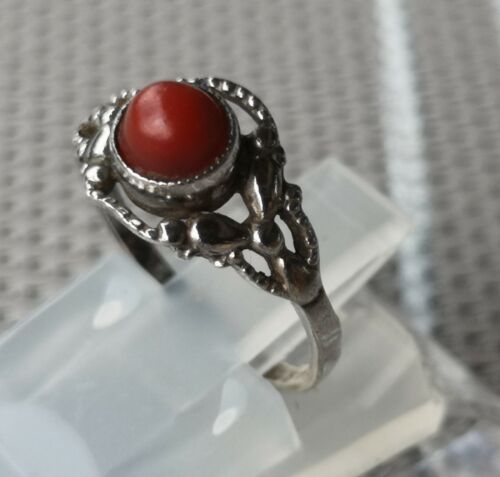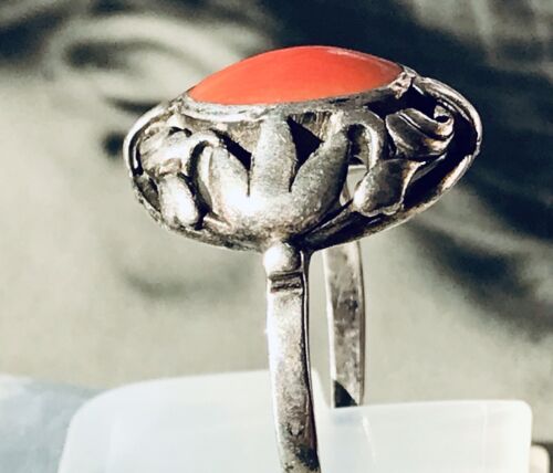 Antik Jugendstil Edel Koralle? DAMEN RING Silber 800 geprüft SUPER Design Gr.55