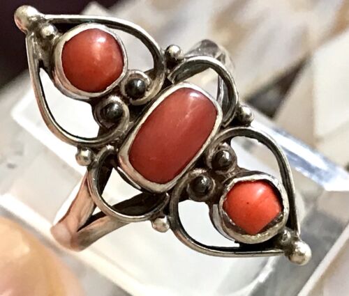 Antik Jugendstil Edel Koralle DAMEN RING Silber 925 SUPER Design Gr.60 Trilogie
