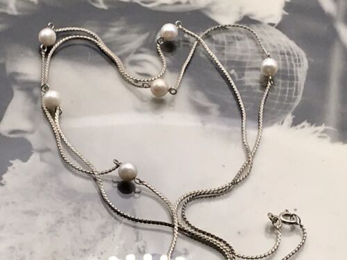 Antik lange Halskette 925 Silber Kette Perlen Zuchtperlen
