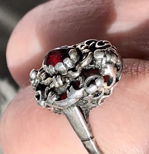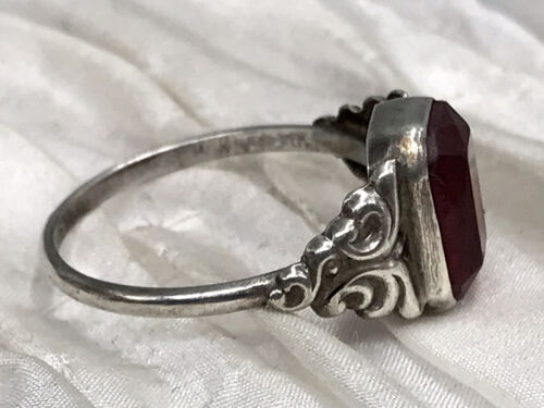 Antik Jugendstil Edel roter Stein Granat? DAMEN RING Silber 835 Gr.52 16,5