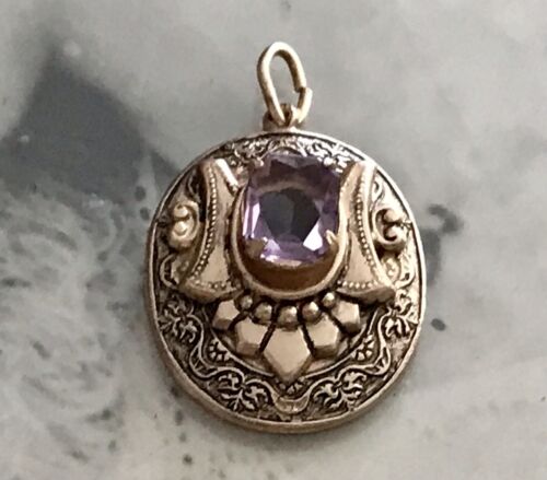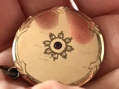 Antik Jugendstil Kettenanhänger Anhänger Medaillon vergoldet roter Stein