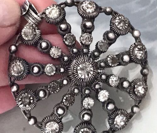 Antik Jugendstil GROß Kettenanhänger Anhänger 833 Silber Steine Holland