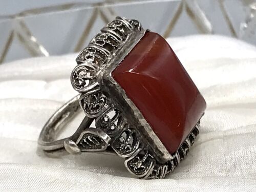 Antik Jugendstil Karneol? DAMEN RING Silber SUPER Design Gr.~56/57 ~17,8 mm-18,2