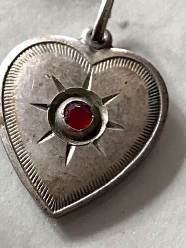 Antik Kettenanhänger Anhänger 835 Silber Herz roter Stein