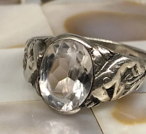 Antik Jugendstil Edel farbloser Stein DAMEN RING Silber SUPER Design Gr.55