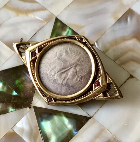 Antik Vintage Kettenanhänger Anhänger Foto Amulett Amerikan Gold Double K&L