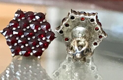 Antik Ohrringe Ohrstecker DAMEN 800 Silber Granatsteine Krönchen Schraube