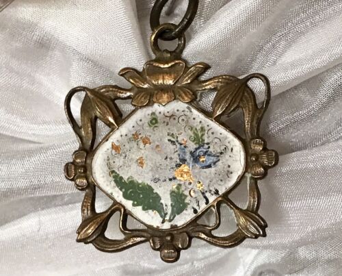 Antik purer Jugendstil Kettenanhänger Anhänger Messing Email