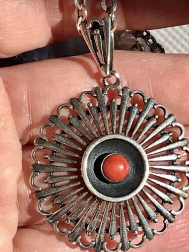 Antik Silber Halskette Anhänger & schöne Kette korallroter Stein