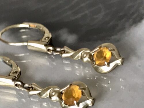 Antik Ohrringe Ohrhänger DAMEN Amerikan Doublè vergoldet topasgelbe Steine K&L