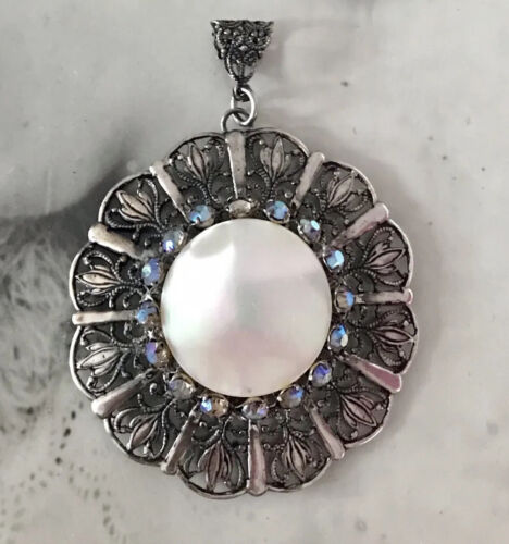 Antik purer Jugendstil GROß Kettenanhänger Anhänger versilbert Organisch Steine