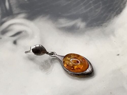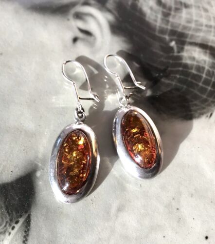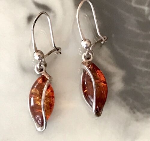 Antik Vintage Ohrringe Ohrhänger DAMEN 925 Silber Bernstein
