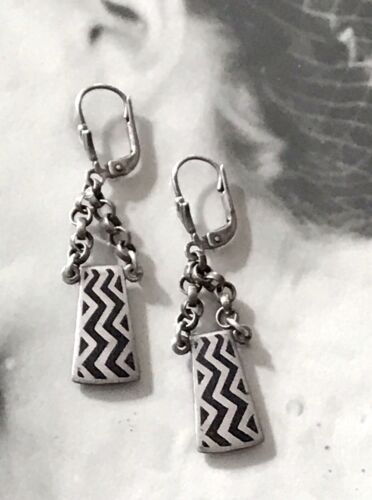 Antik Originell Art Déco Ohrhänger Ohrringe DAMEN Silber 925 Nielo gezackt