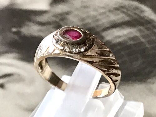 Antik Vintage Damen Ring Rubin? & farblose Steine 925 Silber vergoldet Gr.56
