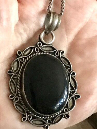Antik Silber Halskette großer versilberter Anhänger Stein Super Design Onyx?