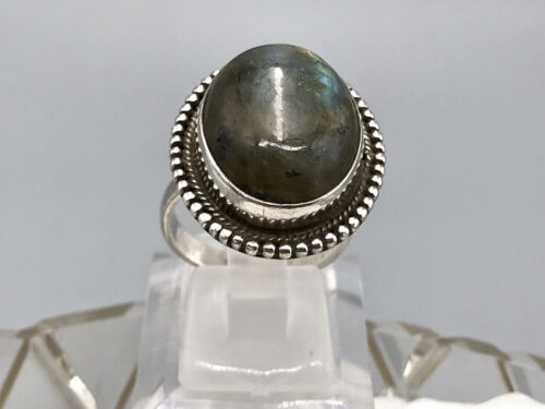 Edel Damen Solitär Ring Labradorit Sterling Silber 925 Gr.56 17,8 SUPER Vintage
